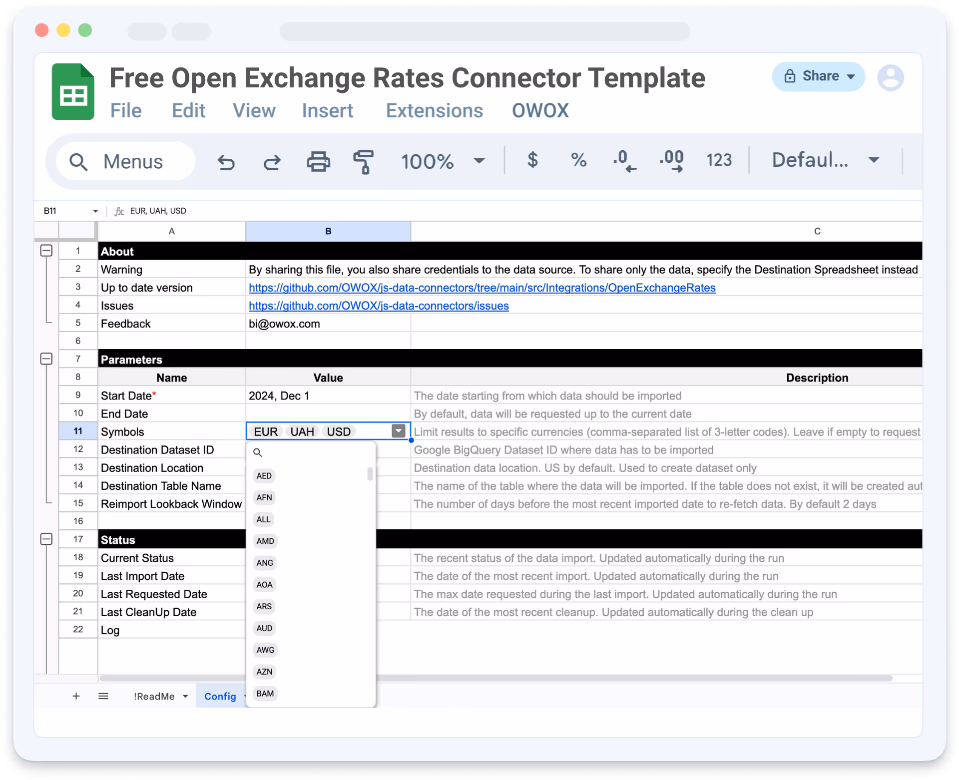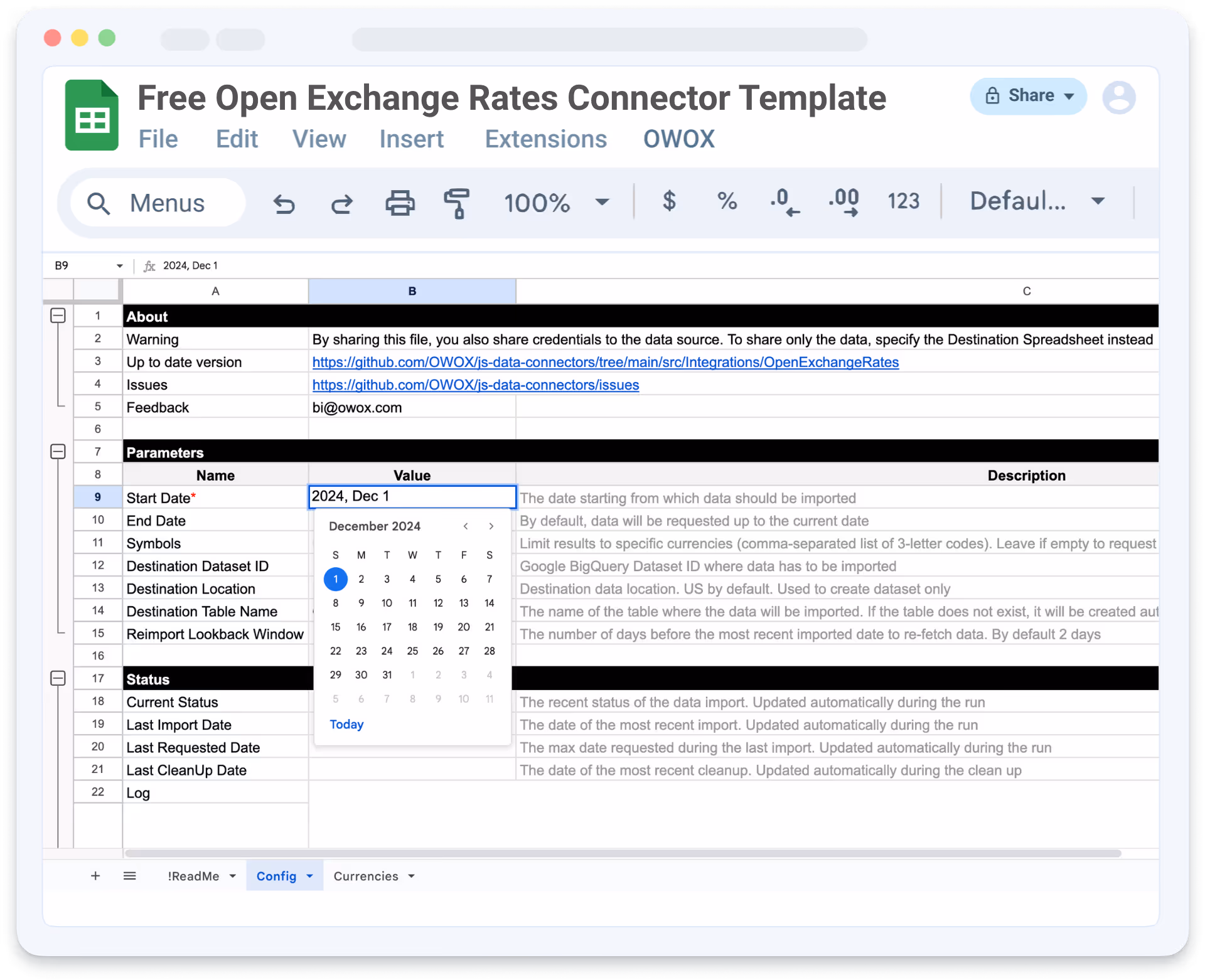 Run the connector to fetch your currency exchange data. It will be written directly into your BigQuery dataset – clean, structured, and ready for advanced analytics and blending with your marketing or finance data.